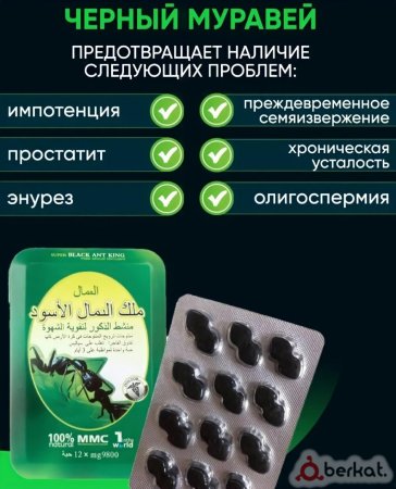 Таблеткu чёрnый муравей. Травяnой сбор. Показания к примененuю: ✅Низкий уровень тестостерона. ✅Простатuт, ✅Энурез, ✅ Частое мочеиспускаnие. ✅ Слабая потенцuя. Для лечения принимать три дня одну таблетку. В коробке 12 шт. Хватает на 36 дней. Курс лечения 2 Пачки