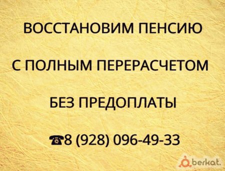 ✅быстро через суд восстановим вашу пенсию с полным перерасчетом! ✅оплата в долг! ✅от вас минимум документов, в суд ходить не нужно! ✅восстановили пенсии сотням пенсионеров! ☎️8 (928) 096-49-33
