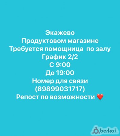Требуется помощница по залу