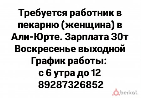 Срочно требуется работник в пекарню (женщина) в Али-юрте