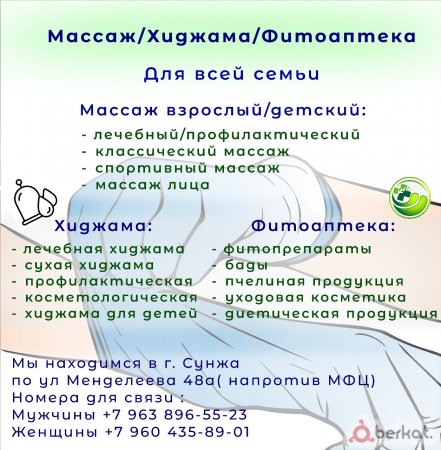 Массаж и Хиджама для взрослых(муж) и детей в Сунже, дипломированный специалист!