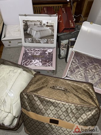1) Большие сумки с двумя подушками и большим одеялом из верблюжей шерсти (2 комплекта);