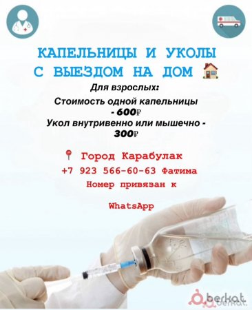 Постановка в/в капельниц и других видов инъекии, медсестра с средним профессиональным образованием и опытом работы