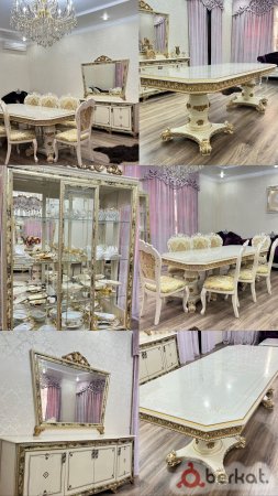 Зеркало тумбочка, 6 стульев и стол, горка для посуды