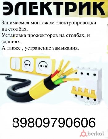 Занимаемся монтажом электропроводки на столбах. Установка прожекторов на столбах, и зданиях. А также , устранение замыкания.