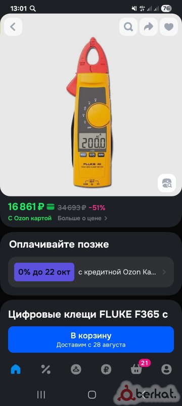 Продам мультиметр Fluke 365 в отличном состоянии. Также проверяет утечку тока Пользовались около 2 месяцев, отдаю за 30% от стоимости. Новые стоят от 15т