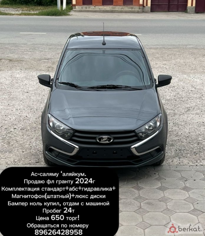 Ас-саляму 'аляйкум. Продаю фл гранту 2024г Комплектация стандарт+абс+гидравлика+ Магнитофон(штатный) +люкс диски Бампер ноль купил, отдам с машиной Есть сигнализация, включается динстационно от пульта Пробег 24т Цена 650 торг! Обращаться по номеру 89626428958