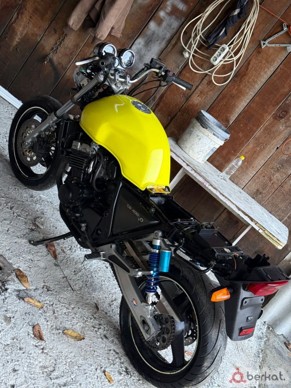 Продаётся HONDA CB400 Тип двигателя: 4-цилиндровый, 4-тактный, рядный. Рабочий объём: 399 см³. Диаметр цилиндра/ход поршня: 55 мм × 42 мм. Мощность: 53 л.с. при 11 000 об/мин. Крутящий момент: 38 Нм при 9500 об/мин. Степень сжатия: 11,3:1. Тип охлаждения: жидкостное. Подвеска Передняя подвеска: телескопическая вилка, ход — 120 мм. Задняя подвеска: двойной амортизатор (регулировка преднатяга), ход — 110 мм. Тормоза Передние тормоза: 2 диска 296 мм, 4-поршневые суппорта (опция — ABS). Задние тормоза: 1 диск 240 мм, 1-поршневой суппорт. Динамика Разгон до 100 км/ч: 4,5 секунды. Максимальная скорость: 180 км/ч (ограничитель). Состояние хорошее, бумаги имеются, окончательная цена 170 т.₽ Связь с