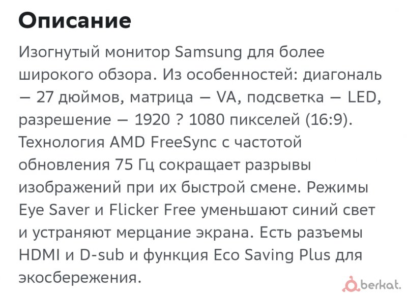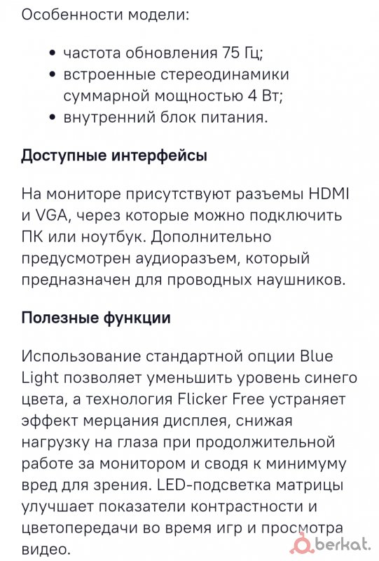 Монитор в отличном состоянии, пользовался им 3 месяца и то не на постоянной основе, в остальное время он стоял вообще без дела, продаю так как недавно продал свой ПК 75 Гц 1920x1080 FULL HD