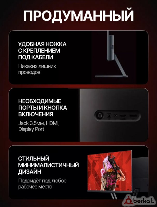 ☪️ Рассрочка до 12-ти месяцев ? Модель: Игровой монитор RAZZ 27 ⚙️ Характеристики: ✨ Диагональ / Разрешение: 27 дюйма / FullHd ? Частота обновления: 100 Гц – максимальная плавность! ? Матрица: VA – глубокий черный цвет и сочные цвета. ⚡ Время отклика: 1мс (MPRT) – молниеносная реакция для игр. ? Комплектация: ✅ Монитор готов к работе прямо из коробки. ✅ Кабель для подключения. ✅ Эргономичная подставка.