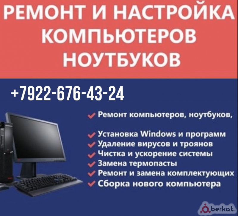 Ремонт компьютеров и ноутбуков, сборка игрового ПК, установка виндоус, чистка компьютера или ноутбука