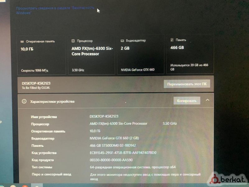 Продам Компьютер Процессор AMD FX 6300 / 6 ЯДЕР Оперативная Память 10 gb Видео Карта /GTX 660 2 GB Жёсткий Диск 500 GB Блок Питания 500W Монитор LG 20 Дюймовый Мышка / Клавиатура