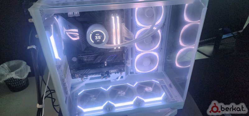Проц 14900k Мат Z790-f Asus strix Бп 1000W 1stplayer ngdp platinum ATX3.1 белый OЗу Kingbank Ddr5 32Gb 7600Mhz Водянка Nzxt Kraken Z73 RGB White Корпус Lian Li O11 Vision белый Ssd 980 Pro 1TB