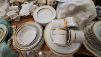Белый с золотом столовый сервиз. 11 больших тарелок, 11 закусочных, 10 средне-глубоких, 2 продолготоватых блюда,одна большая глубокая чаша,2 средне-глубоких,2 салатника,4 чайные пары,молочник,сахарница. В связи с недокомплектом(разбились при доставке) этот шикарный сервиз продаётся за 40000р,без чайного набора за 35000р