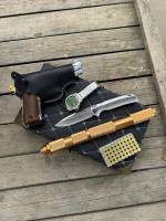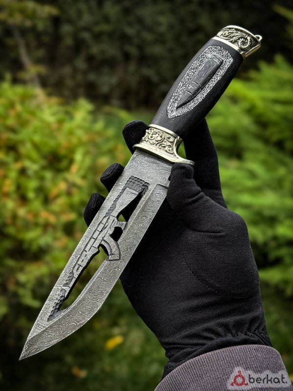 ?Авторский нож «Калашников» нож с мужской харизмой ? Отличный подарок мужчине любителю оружейной тематики ?Характеристики; ⚜️Клинок выполнен из кованой дамасской стали с ручной резьбой по клинку ⚜️Рукоять из дерева черный граб с ручной резьбой гранаты и патрона 7.62. ⚜️Гарды и пятка литье мельхиор и бронза ⚜️Ножны из натуральной кожи ручной пошив. ⬇️Размеры; - Общая длинна - 31 см - Длинна клинка - 17 см - Ширина клинка - 4 см ?Цена - 28.000₽ Обращаться: (По поводу товара) ?+7977-001-00-04