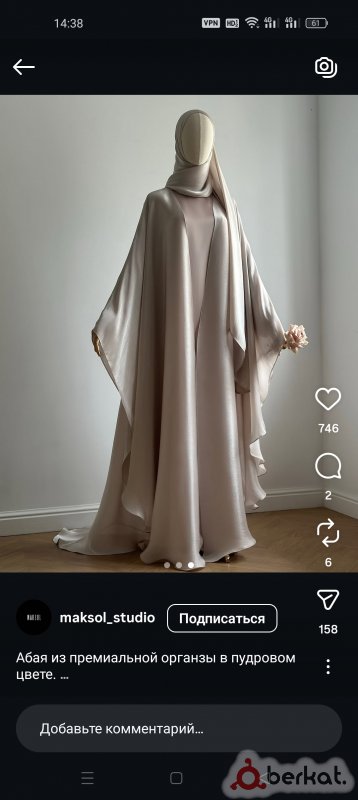 Мир вам , милость Аллаhа и Его благословение .Продаю платье из премиальной органзы + базовое внутреннее платье, цвет айвори (ткань основного платья очень красиво переливается). Надевала 1 раз на 2-3 часа.Первое фото коллажа тематическое, остальные живые. БОльшую часть внимания в данном изделии забирают рукава , в надетом виде смотрится очень нежно и дорого. Цена данного платья 6.000 (стоило 12k, брала в Махачкале). В подарок положу нежные балетки миу миу (темно-оранжевого оттенка), надевала так-же 1 раз. Платье после химчистки. Подойдет на рост 168-176 ( мой рост 1.73, надевала с туфлями 5 см, длина платья при надетых туфлях была чуть ниже щиколотки). Нахожусь в Ингушетии, возможна отправка