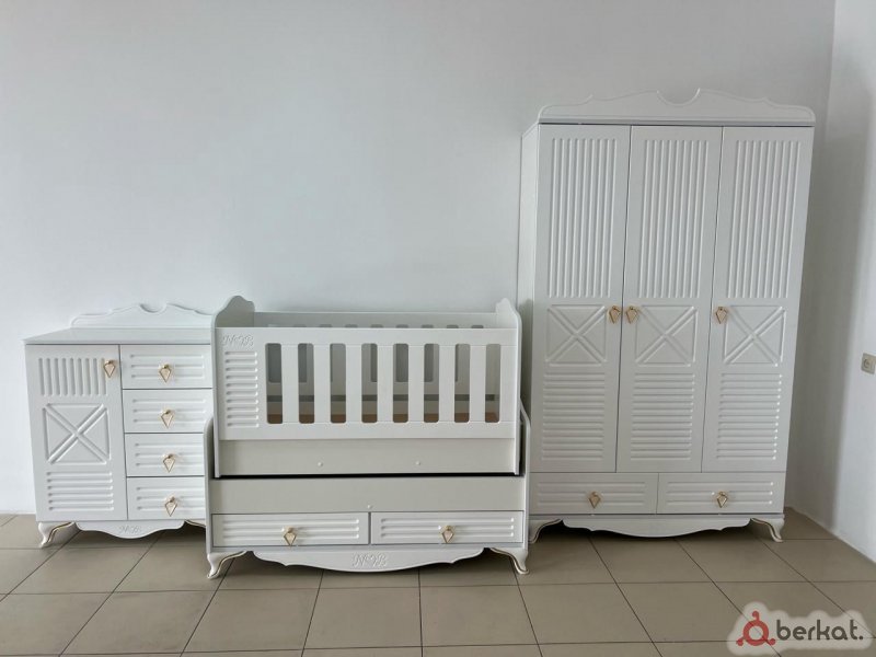 Продаю красивую деревянную детскую кроватку в цвете слоновая кость. Она не пустышка — настоящая добротная, качественная модель. Сейчас кроватка находится в разобранном виде и в коробке, поэтому не могу сделать фото. Прикладываю похожее изображение для примера, но наша выглядит покрасивее и аккуратнее. Состояние — как новое, ребёнок в кроватке ни разу не лежал. Характеристики и преимущества: Натуральное дерево (крепкая, не пустотелая конструкция) Цвет: слоновая кость Регулируемые бортики Удобный выдвижной нижний ящик В комплекте: ортопедический матрас Покупалась за 45 000 продаю за 25 000 , небольшой торг возможен Кроватка качественная, надёжная и полностью готова к использованию после сборки