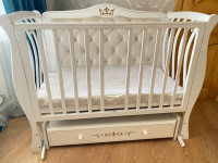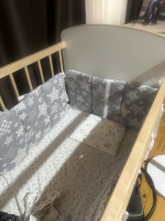 Кроватка год стояла в собранном виде, ребенок отказывался там спать, покупала за 15 тыс продам за 10. В комплекте матрас, простынь, одеяло подушка,балдахин, подушки-бортики.