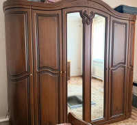 Срочно продается спальная мебель: Шкаф 5тидверный Кровать 2 прикроватные тумбы Трюмо с пуфиком Высокая тумба-стеллаж У шкафа есть красивый козырек наверху ( у нас не поместился из-за низкого потолка) Состояние хорошее Доставка за наш счет в любую точку Ингушетии