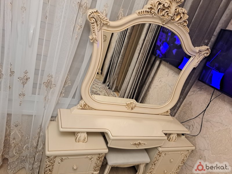Продаётся спальная мебель Лорена. Большой шкаф,кровать ,две тумбочки,зеркало,туалетный столик.Все в хорошем состоянии.Есть мелкие дефекты.(пришлю доп.фото.)Цена 45т,уступлю немного.Находимся в Карабулаке. Писать на вац апп 988 827-70-78.