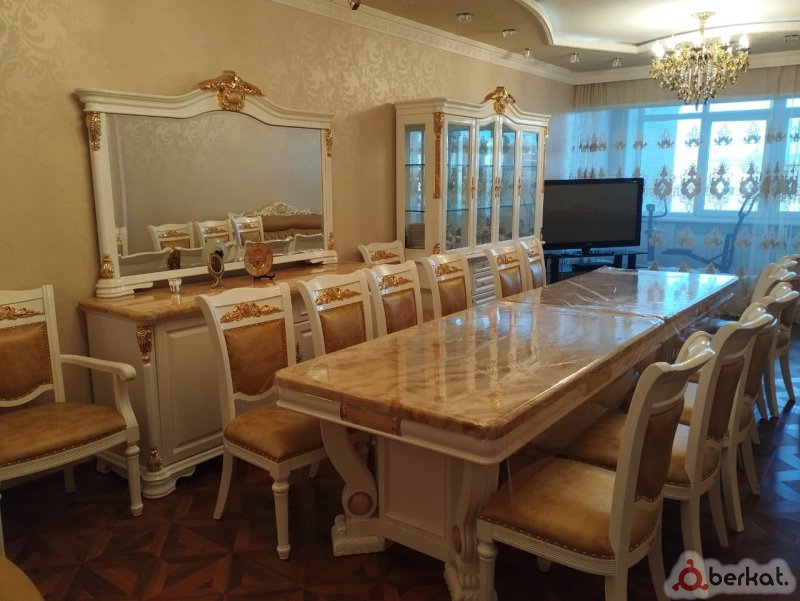 Продается гостиная мебель GD GUANGDA. Мебель новая.В комплекте стол обеденный размер 3,0*1,25*0,80, два кресла, 8 стульев, витрина с мягкой обивкой внутри, как на стульях, комод с зеркалом. Цена 2500000. Реальному покупателю хороший торг уместен.
