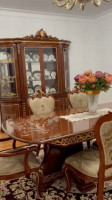 Продается гостиная мебель GD GUANGDA. Мебель новая.В комплекте стол обеденный размер 3,0*1,25*0,80, два кресла, 8 стульев, витрина с мягкой обивкой внутри, как на стульях, комод с зеркалом. Цена 2000000. Реальному покупателю хороший торг уместен.