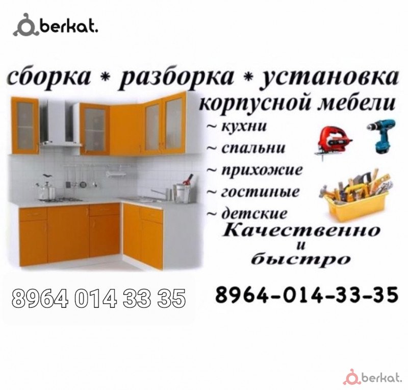 Качественно соберем любую мебель. Кухни, шкафы, спальни, горки, гардеробные и т. д звонить строго на номер:8925-006-73-73. Ватсап:8938-008-49-83.