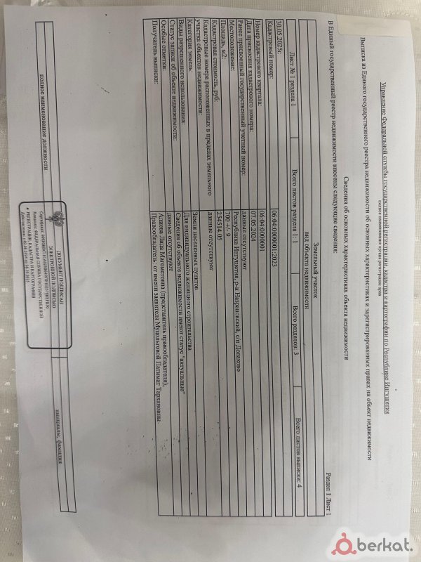 Ас салам алейкум. Продам угловой участок 782 м² в с.п.Берд-Юрт. 9 линия √16Б. В шаговой доступности школа, администрация и поликлиника. Все документы на руках. Возможен торг.