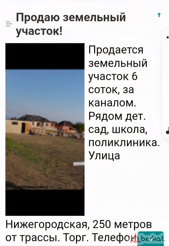 срочно продается земельный участок 6 соток за каналом хорошем населеном месте цена за наличный расчет 800 000 А так же рассматриваю бартер на машину звонить по номеру 8988 804 95 90