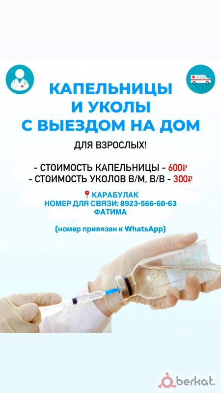 Постановка в/в капельниц и других видов инъекии взрослым. Медсестра с средним профессиональным образованием и опытом работы г.Карабулак-Яндаре Капельниц 600 ,инъекии по 300р