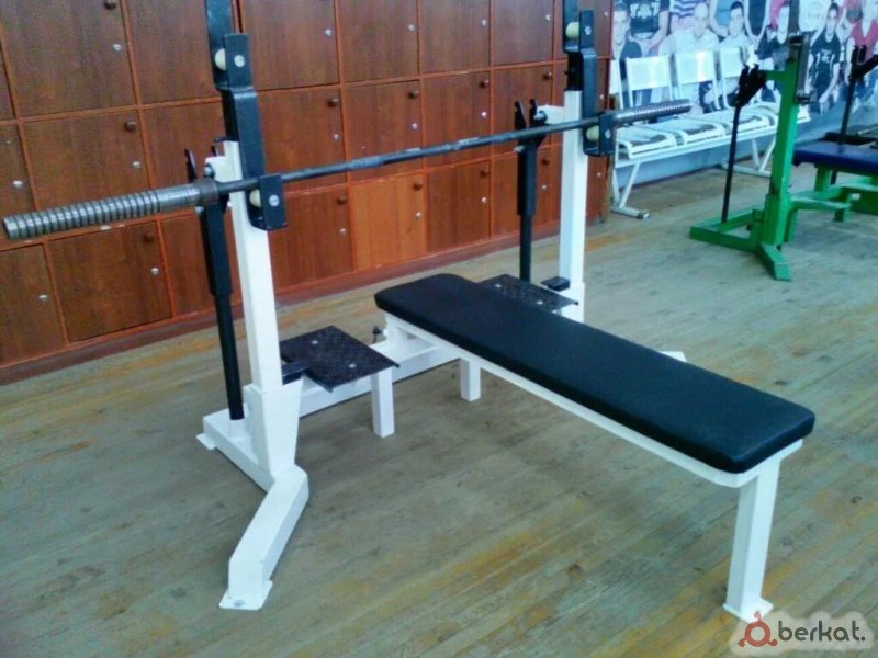 Скамья олимпийская. Гриф олимпийский с замками: длина 220см диаметр 51мм. Диски обрезиненные с отверстиями для пальцев по две штуки: 25кг, 15кг, 10кг. Итого гриф с дисками весит 120кг