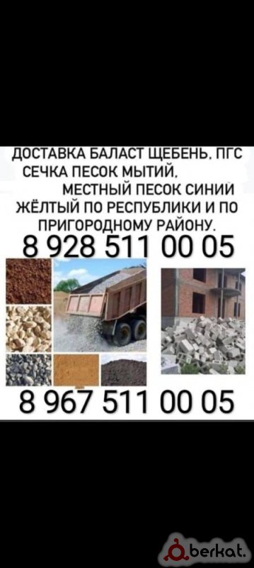 Продаю сыпучие строительные материалы с доставкой по Сунженскому району и ближайшим сёлам (Ингушетия). В наличии: • Щебень разных фракций • Песок (карьерный, речной) • Чернозём • Сечка • Отсев и другие материалы Условия: — Доставка на собственном КАМАЗе — Быстрая выгрузка на месте — Объёмы от 5 до 15 тонн — Постоянным клиентам — скидки — Работаем без выходных Цены по договорённости — зависит от объёма и расстояния. Звоните или пишите — договоримся!Звонить и писать ✍️