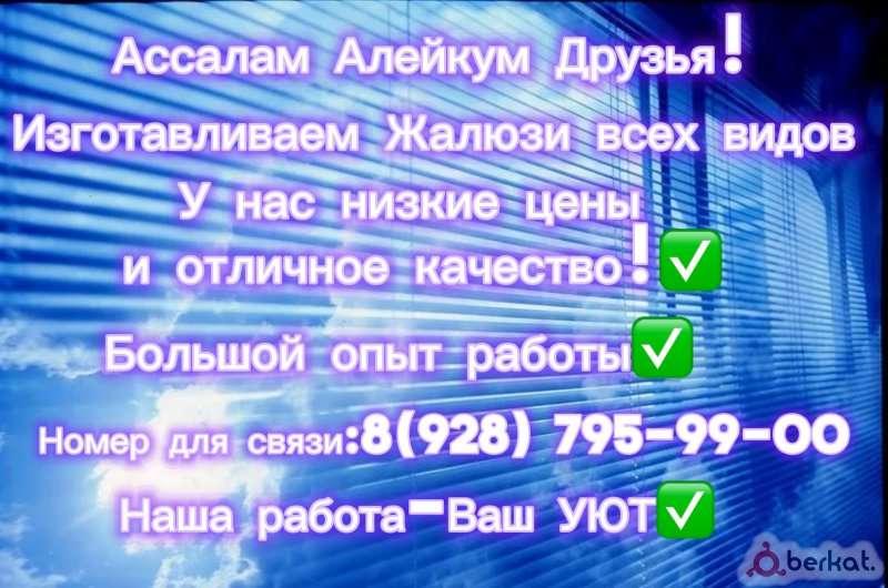 Изготавливаем и Устанавливаем жалюзи всех видов любой сложности! У нас самые низкие цены✅ Самое отличное качества✅ Мы работаем над Вашем же Уютом. Обращатся по номеру:8(928)795-99-00