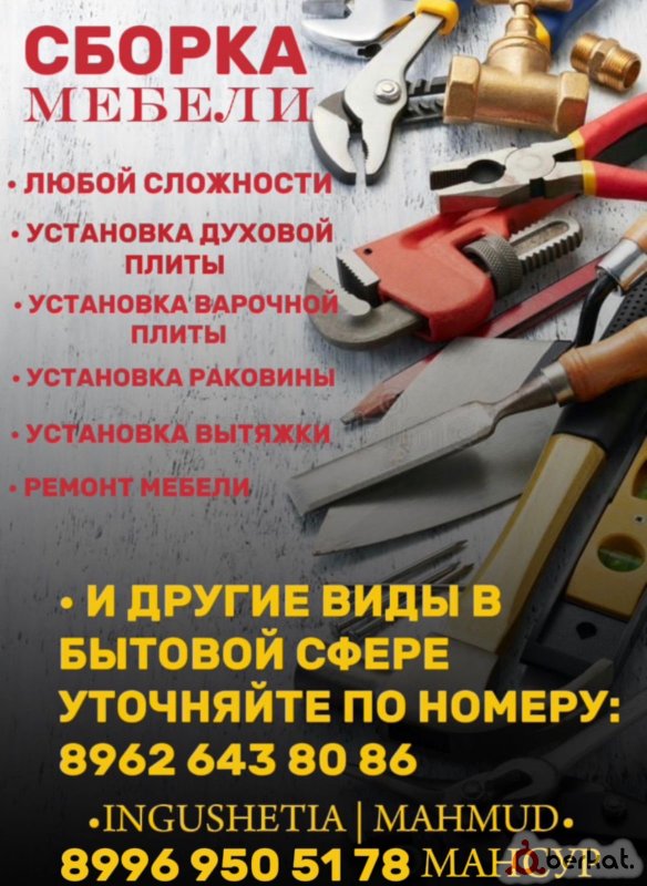 Сборка и разборка мебели любой сложности Установка Карнизов Изготовление маскитных сеток Обращаться по телефону 89622130412