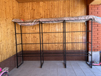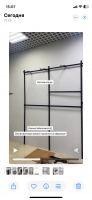 В длину 3 метра. Высота-189. Глубина полки - 49,5см. Из труб 3*2. Черный цвет. Годная вещь для подсобной кухни. Мы не рассчитали высоту на несколько см, поэтому не влезает в дверь.