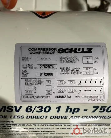 Компрессор Цена:35 000 руб. Состояние: новое Компрессор MSV 6/30 1 hp – 750 W, в наличии на складе в г. Назрань, р-н Центр-Камаз, ул. Дружбы, 8. Тел. для связи (WhatsApp и звонки): 8 (928) 794-07-73; 8(928) 093-34-24