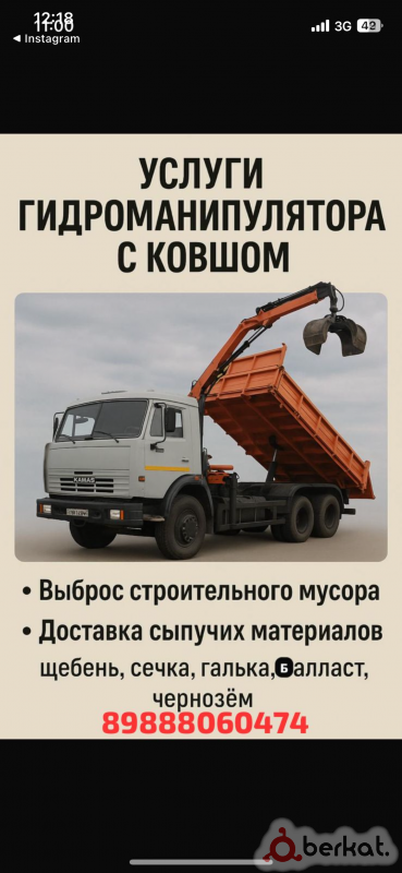 Продаю чернозем Предлагаю Услуги Манипулятора с ковшом,а так же вывозим строительный мусор и. т. д, а так же везём песок, щебень, чернозём, заполняем фундамент. Не надо нанимать трактор и камаз, я на себя гружу с ковшом и выбрасываю