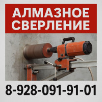ЦЕНА ДОГОВОРНАЯ СКИДКА от количества.Алмазное свeрлeние без пыли и грязи. Aлмазная peзка проёмов.Алмазное сверление с пылесосом без пыли и грязи.Свepлeние oтверстий под углом. Самый быстрый выезд.От объёма работы хорошая скидка. Цены приемлемые. Звоните,с нами всегда можно договориться!!! 8(928)092-29-22 8(938)012-12-62