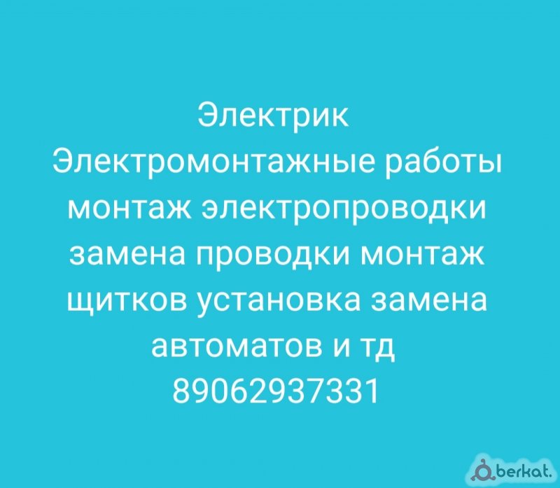 работаю под ключ дом, помещение,квартира, здания проводка света ✓установка и замена розеток и выключателей ✓сборка и установка люстр ✓монтаж/демонтаж столбов, установка светильников ✓сборка и установка щитков ✓замена проводки установка счетчиков установка стабилизаторов всех видов установка генераторов работаю быстро качественно и на совесть. при возможности делаю скидку. 8(929)-262-25-37