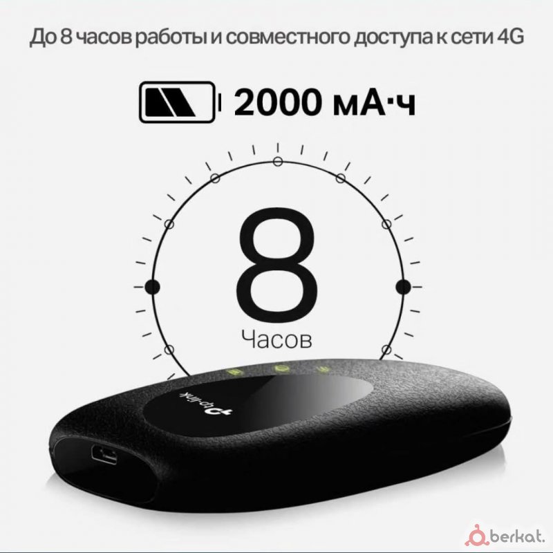 Позволяет организовать высокоскоростной доступ в интернет в любом месте с покрытием 3G/4G. Особенности: поддерживает до 10 одновременных подключений по Wi-Fi; рабочий диапазон 2,4 ГГц со скоростью передачи данных до 300 Мбит/с; встроенный аккумулятор ёмкостью 2000 мА·ч позволяет использовать роутер до 8 часов без подзарядки; настройка и управление с помощью фирменного приложения tpMiFi.