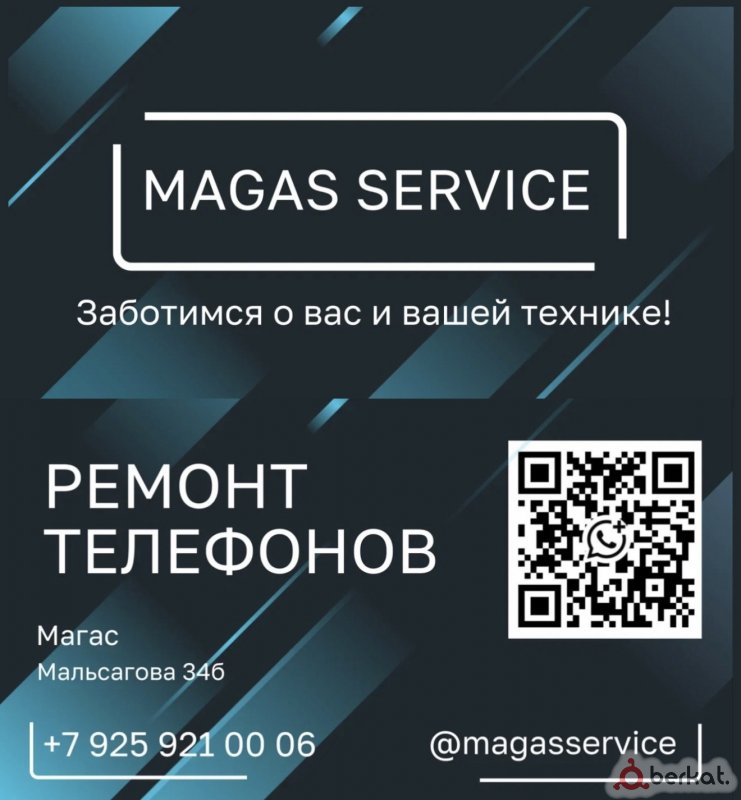 Наш сервисный центр предлагает полный спектр услуг по ремонту мобильных устройств: · Замена дисплея и стекла · Ремонт после воды (чистка, замена разъемов) · Восстановление корпуса · Замена аккумуляторов, динамиков, микрофонов · Ремонт кнопок (включения, громкости) · Решение проблем с камерой · Замена разъемов зарядки · Программный ремонт (сброс, прошивка) Контакты: Телефон: +7(925)921-00-06 Адрес: г.Магас, ул. Д.Мальсагова 34б Режим работы: с 10:00 до 23:00 WhatsApp: https://wa.me/message/RXYC6N3CWUCUG1 Instagram: https://www.instagram.com/magasservice?igsh=MXZ3b3JkdmV6OGVtdA%3D%3D&utm_source=qr