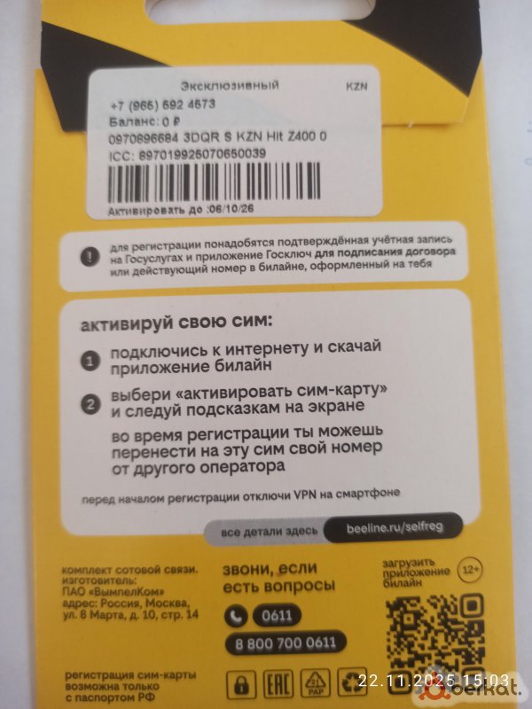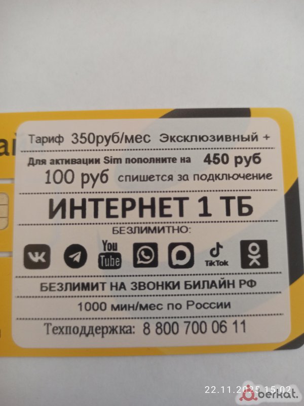 Продаю Сим-карты Билайн Безлимит тариф 350р месяц, Безлимитные звонки на Билайн, на другие 1000мин, Месенжеры социальные сети,видео бесплатно, Интернет 1000г, Активация через Госуслуги или через ваш номер Билайн ( занимает 5 мин максимум все объясню). Цена 500р (можно выбрать номер на свой выбор). Кому надо сделаю e-sim Номер для связи 8964-854-78-20.