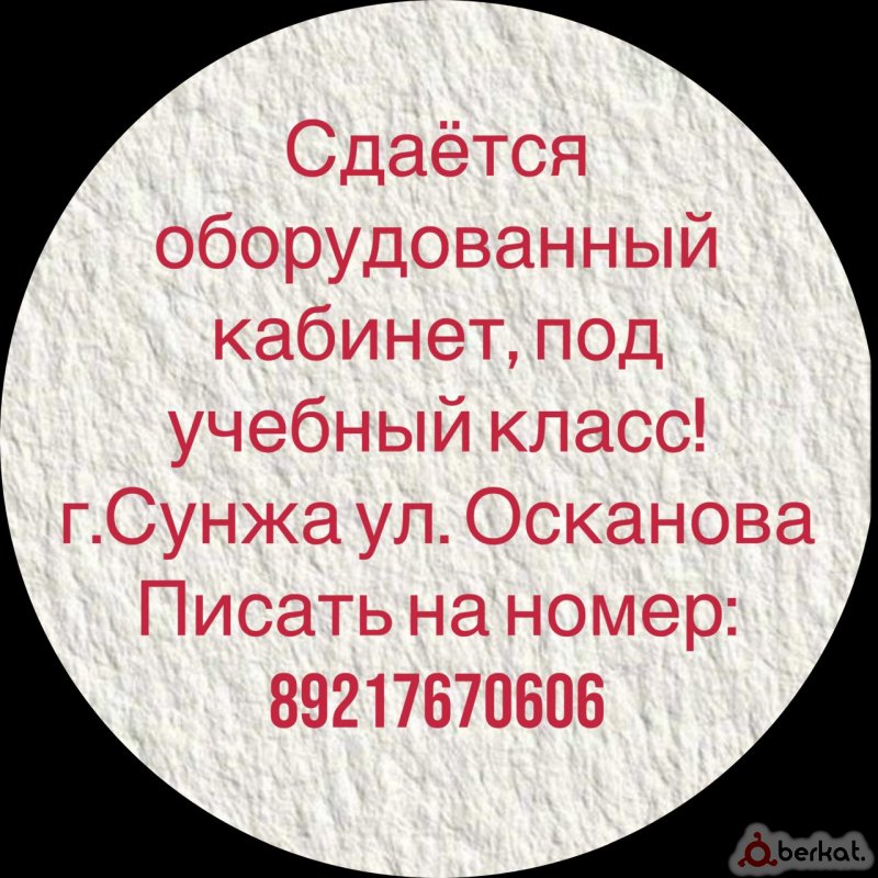 Сдается в аренду, полностью оборудованный, светлый, большой кабинет,в самом центре города Сунжа.