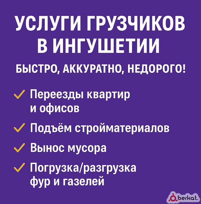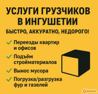 Услуги Грузчиков в Ингушетии Быстро, аккуратно, недорого! ✅ Переезды квартир и офисов ✅ Подъём стройматериалов ✅ Вынос мусора ✅ Погрузка/разгрузка фур и газелей Надёжные и опытные грузчики